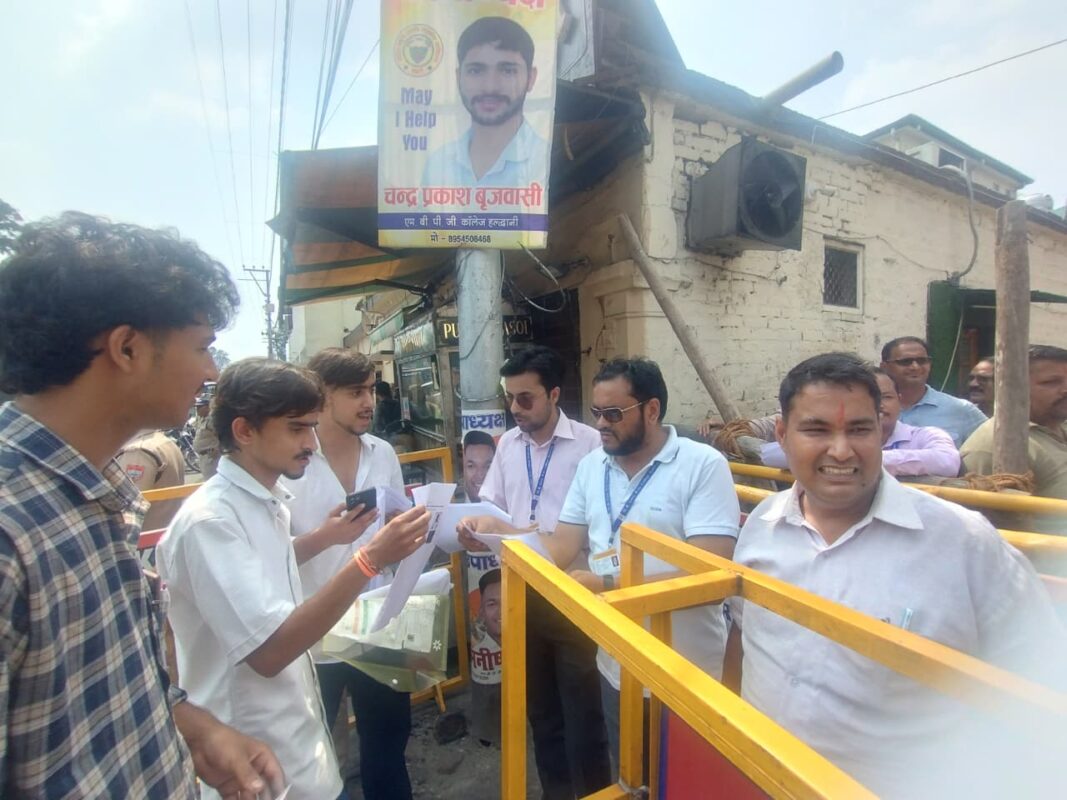 हल्द्वानी : कुमाऊं के सबसे बड़े एमबीपीजी कॉलेज में आज छात्रसंघ चुनाव के लिए नामांकन प्रक्रिया संपन्न हुई। सुबह 11 बजे से अपराह्न 3 बजे तक प्रत्याशियों ने कॉलेज के नामांकन कक्ष में अपने नामांकन पत्र जमा किए। कॉलेज परिसर के अंदर जहां शांतिपूर्वक तरीके से नामांकन पत्र जमा हुए, वहीं परिसर के बाहर नैनीताल रोड में माहौल तनावपूर्ण रहा। नैनीताल रोड पर विभिन्न पदों के प्रत्याशियों ने रैली निकाली, जिसमें उनके समर्थकों की भारी भीड़ उमड़ी। इस दौरान दो गुटों जिसमें टैक्सी यूनियन के अध्यक्ष भरत भूषण व कुछ अन्य युवकों के बीच कहासुनी हो गई जो देखते ही देखते झड़प में बदल गई। धक्का-मुक्की और हंगामे की स्थिति को देख कोतवाल राजेश यादव ने पुलिस बल के साथ मौके पर पहुंचकर स्थिति संभाली। बाहरी अराजक तत्वों को मौके से खदेड़ा गया और भीड़ को तितर-बितर किया गया। इसके अलावा कॉलेज के एक अन्य छात्र की भी पुलिस से नोकझोंक हुई, जिस पर लाठी फटकार कर पुलिस ने उसे वहां से हटाया। नामांकन के बाद प्रत्याशियों ने भारी समर्थकों के साथ रैली निकाली और अलग-अलग तरीकों से प्रचार किया। सभी ने विभिन्न तरीकों से रैली निकालकर उनके पक्ष में मतदान करने की अपील की। इस दौरान पूरा कॉलेज इलाका चुनावी रंग में रंगा नजर आया।