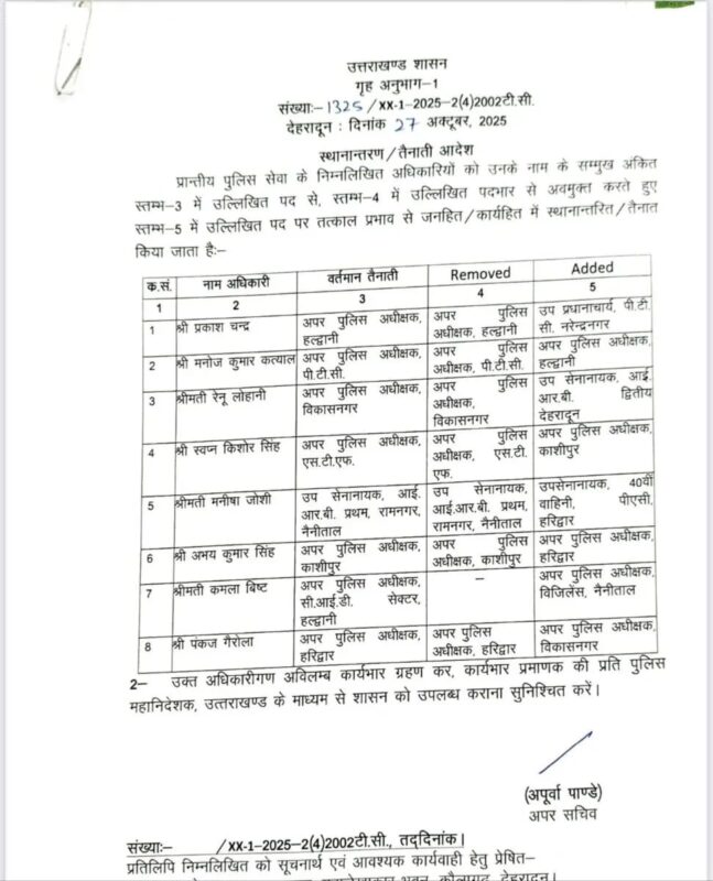 देहरादून, हल्द्वानी समाचार। आखिरकार SSP नैनीताल को सरकार ने हटाया। कई IPS और PPS अधिकारियों के तबादले उत्तराखंड शासन ने किए। आज एक दर्जन से अधिक आईपीएस और पीपीएस अधिकारियों के तबादला किए हैं जिसमें लंबी किरकिरी के बाद नैनीताल के एसपी प्रहलाद नारायण मीणा को हटा दिया गया है। उनको विजिलेंस विभाग में तैनाती मिली है।